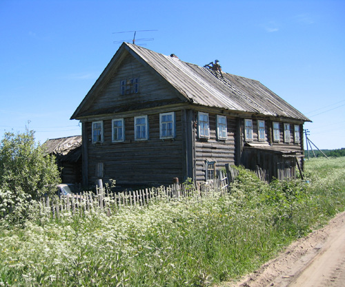 ![]() | Bostadsarkitekturen består av gråa gamla stockhus. Det kan vara svårt att avgöra vilka av dem som är bebodda, men om det finns en bil på gården får man anta att huset är bebott. |