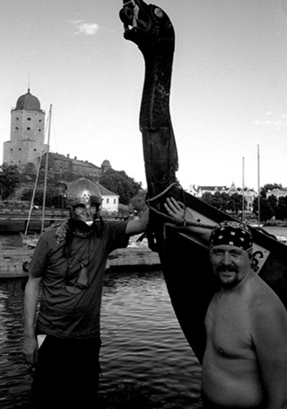 Kaksi venäläistä viikinki-intoilijaa auttavat meitä laivan järjestykseen saamisessa. Toinen heistä, iso ja voimakas kaveri jota kutsuttiin Attilaksi, lahjoittaa meille kiiltävän teräksisen viikinkikypärän, jonka hän on itse valmistanut.